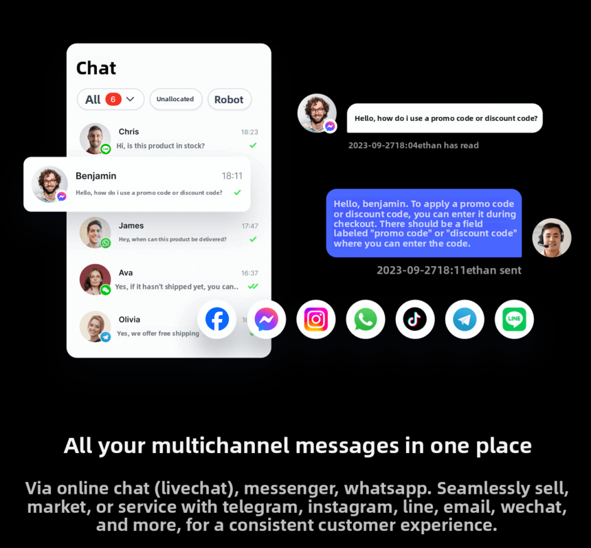 Aggregated Online Chat (Livechat), WhatsApp, Facebook Messenger, TikTok, Instagram, Telegram, Line, Email, WeChat. All the evaluation(0)